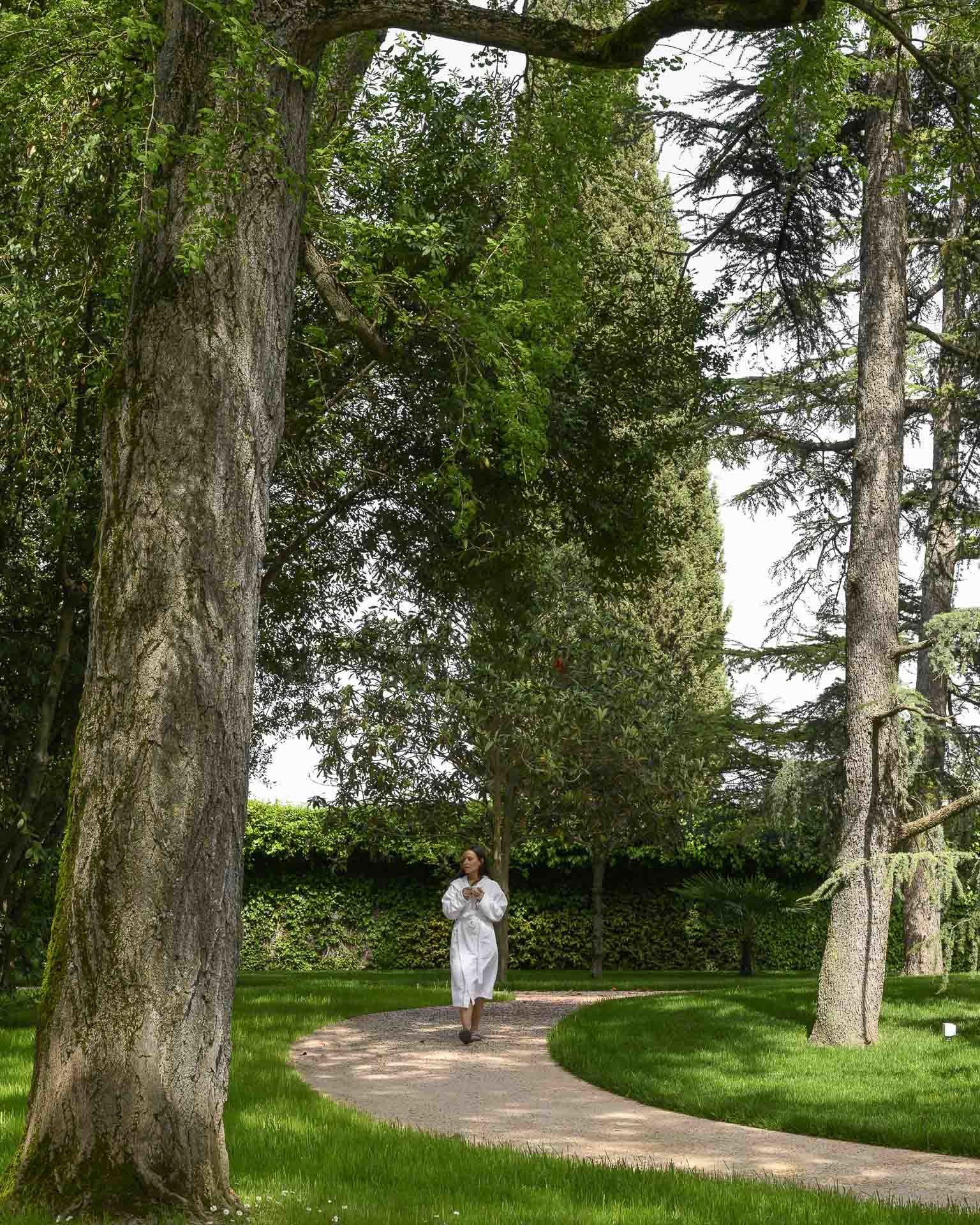 Giunti alla villa sarete accolti da un elegante giardino completamente ristrutturato, dove si innalzano diversi alberi secolari, tra cui un maestoso Ginkgo Biloba di 250 anni (la cui foglia è diventata simbolo dell’hotel benessere Posta Donini) e un imponente cedro del Libano di oltre 300 anni, i cui rami sembrano voler abbracciare chi si rifugia sotto la sua ombra.