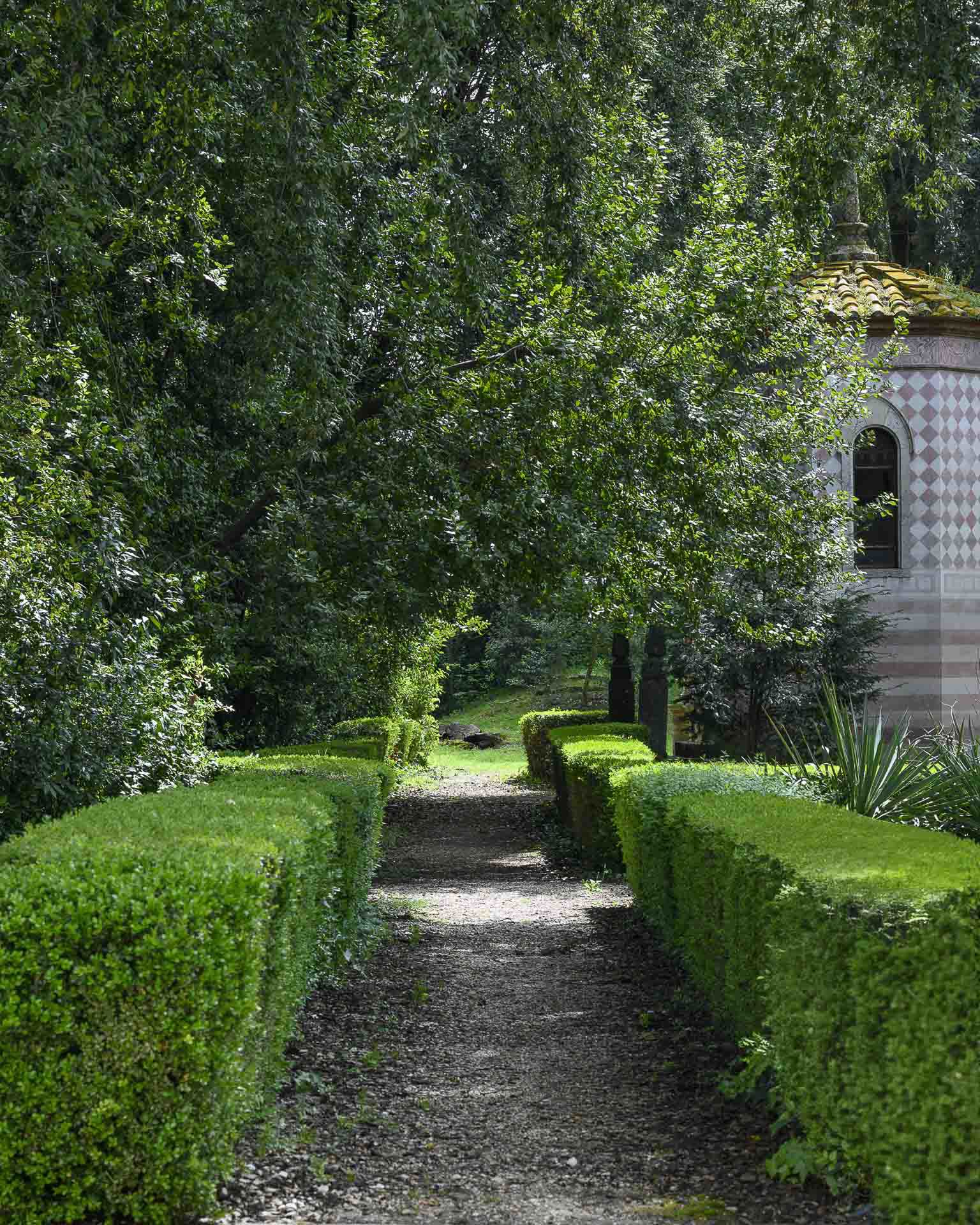 Dietro la villa, l'eleganza del giardino all'italiana lascia il posto al fascino del bosco romantico, un luogo magico in cui perdersi tra grottini in pietra, vialetti e ponticelli che attraversano un lecceto secolare, in cui spicca, imponente, un leccio di oltre 400 anni.
